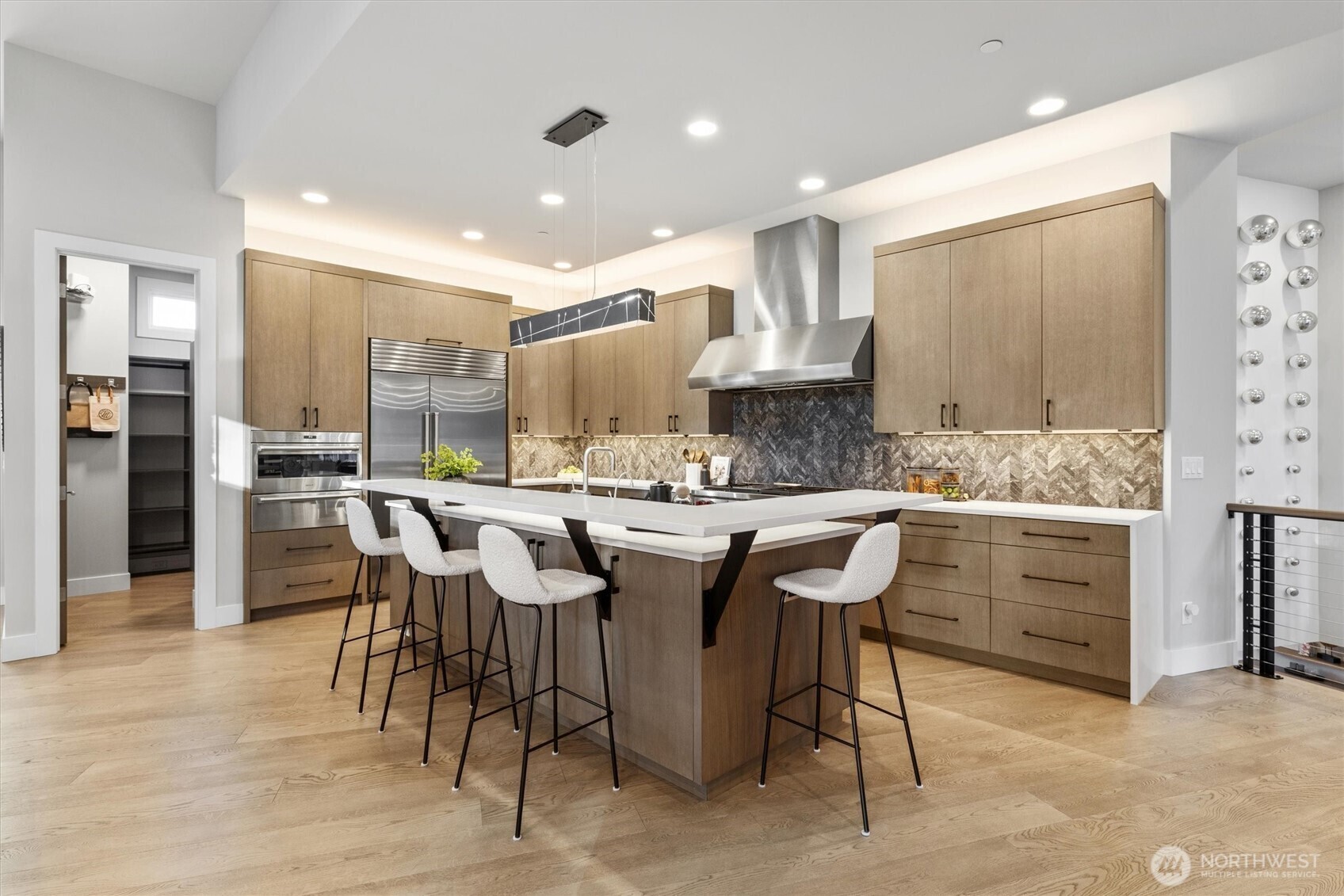 Tucked away in a gated enclave of extraordinary estates, this breathtaking retreat awaits you. Its Northwest Modern design complements the native setting with soaring windows anchored by artisan stone and rift sawn oak finishes. Word-class amenities, including your own private boat slip on Lake Sammamish make this a truly special place to call home. Quality craftsmanship shines in this Steve Burnstead resale through every corner of the generous, light-filled interiors. A soaring 12-foot foyer and impressive dining area welcome you in. Entertain or escape in the great room with inviting living and dining areas flowing around an epicurean’s kitchen. Chefs will revel in the commercial Wolf/Subzero appliances, floating quartz bar, and walk-in pantry. Dual French doors open for parties on the covered patio. At the end of the day, soak your cares away in the freestanding tub in your serene main floor owner’s suite, replete with a gas fireplace and custom walk-in closet. Four more bedrooms, including a guest suite with kitchenette, plus rec and bonus rooms provide space for multi-generational living or an au pair. Plans for a potential DADU** are also available. Stroll to the East Lake Sammamish trail and recreation. You’ll also enjoy easy access to Redmond, Microsoft, light rail and 520 from this superb location.