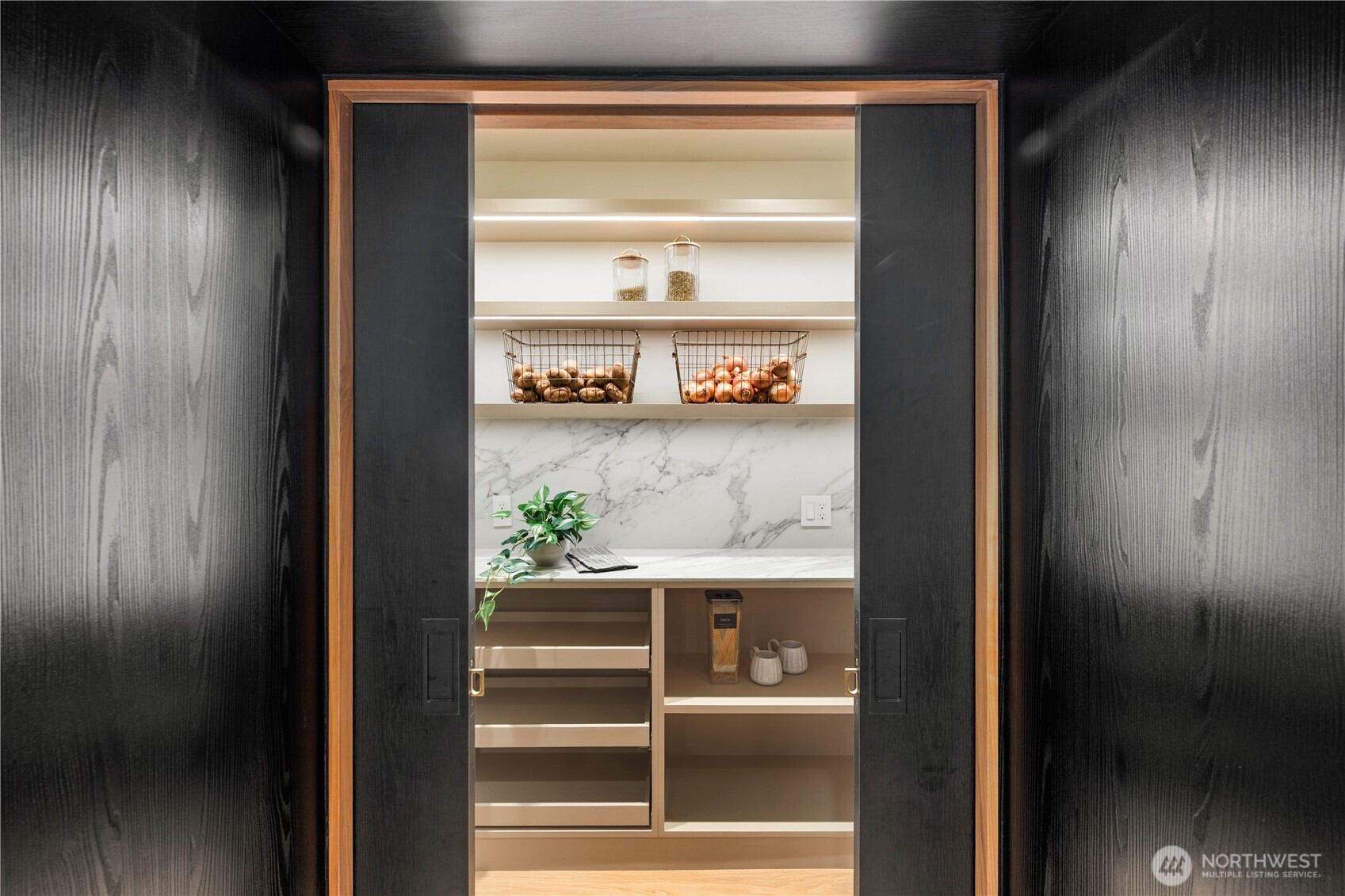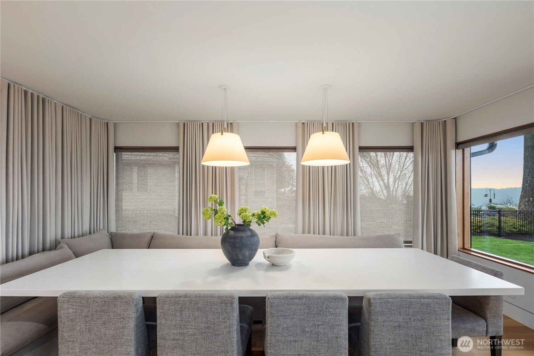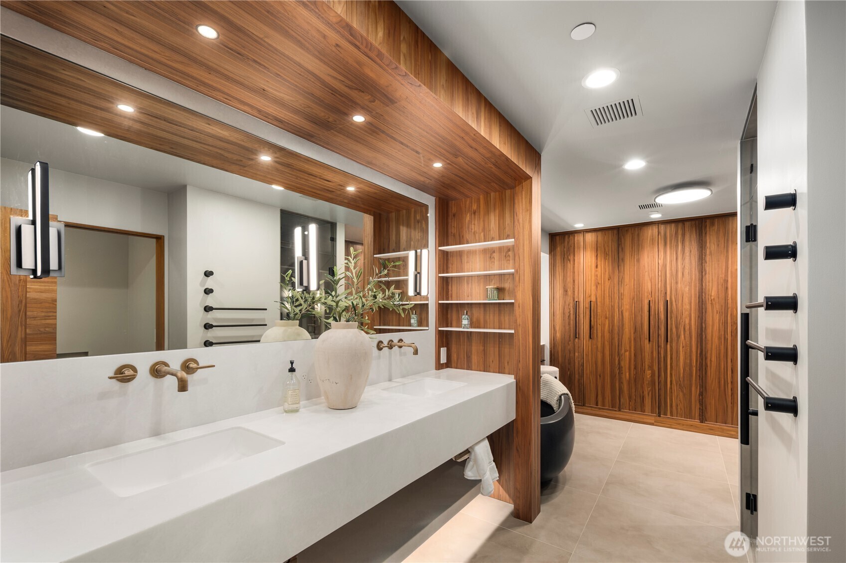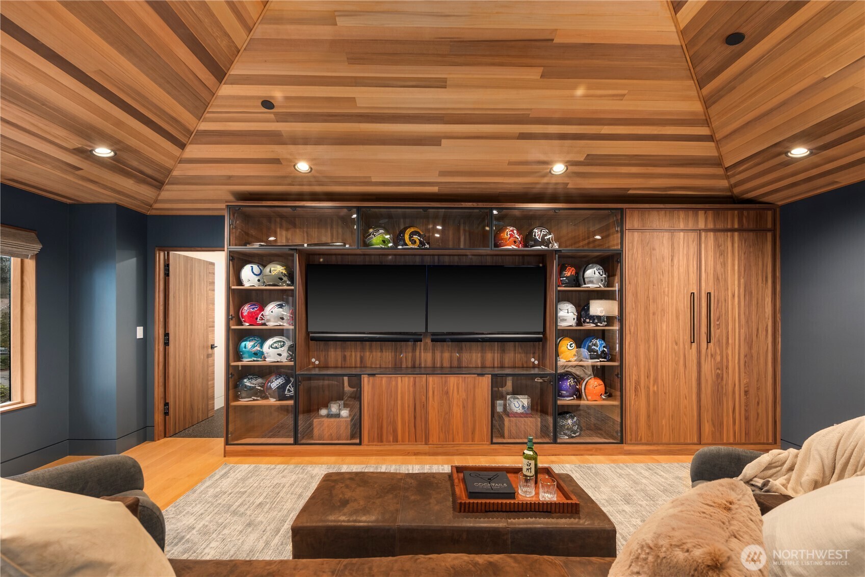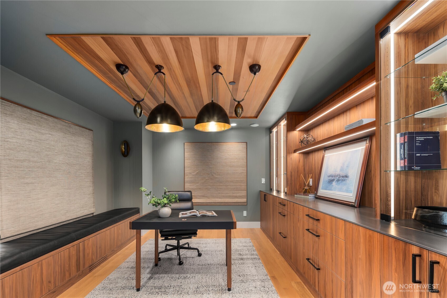 Rarely does a home of this caliber grace the Gig Harbor market. Perched on the bluff with sweeping views of Mount Rainier and the water—this home is a true modern masterpiece. Blending clean architectural lines with warm natural materials, it's both striking and inviting. No expense has been spared and no detail overlooked in the thoughtful design and craftsmanship throughout. Walnut-wrapped windows & doors, white oak hardwoods and cedar plank ceilings are just the beginning. The main level offers seamless spaces for living and entertaining—anchored by a stunning chef’s kitchen with premium appliances, expansive porcelain island, walk-in pantry, and designer lighting. Enjoy a tailored breakfast nook and dining area + wine room highlighting dramatic views and refined finishes. A main-level office showcases moody bespoke touches and custom cabinetry. Upstairs, the exquisite primary suite captures breathtaking views and features a spa-inspired bath, sophstone tub & impressive custom closet. Three additional bedrooms offer beautifully thoughtful storage & shared full bathroom. Best yet, a private retreat space with cedar-clad ceilings, bar area, and bath creates the ultimate lounge or media room—and a gym room just beyond. An additional upstairs office provides the perfect work-from-home setting. Custom expansive outdoor deck and a fully fenced yard complete this exceptional residence. Modern luxury, perfectly executed. None like it. This is elevated living at its finest.