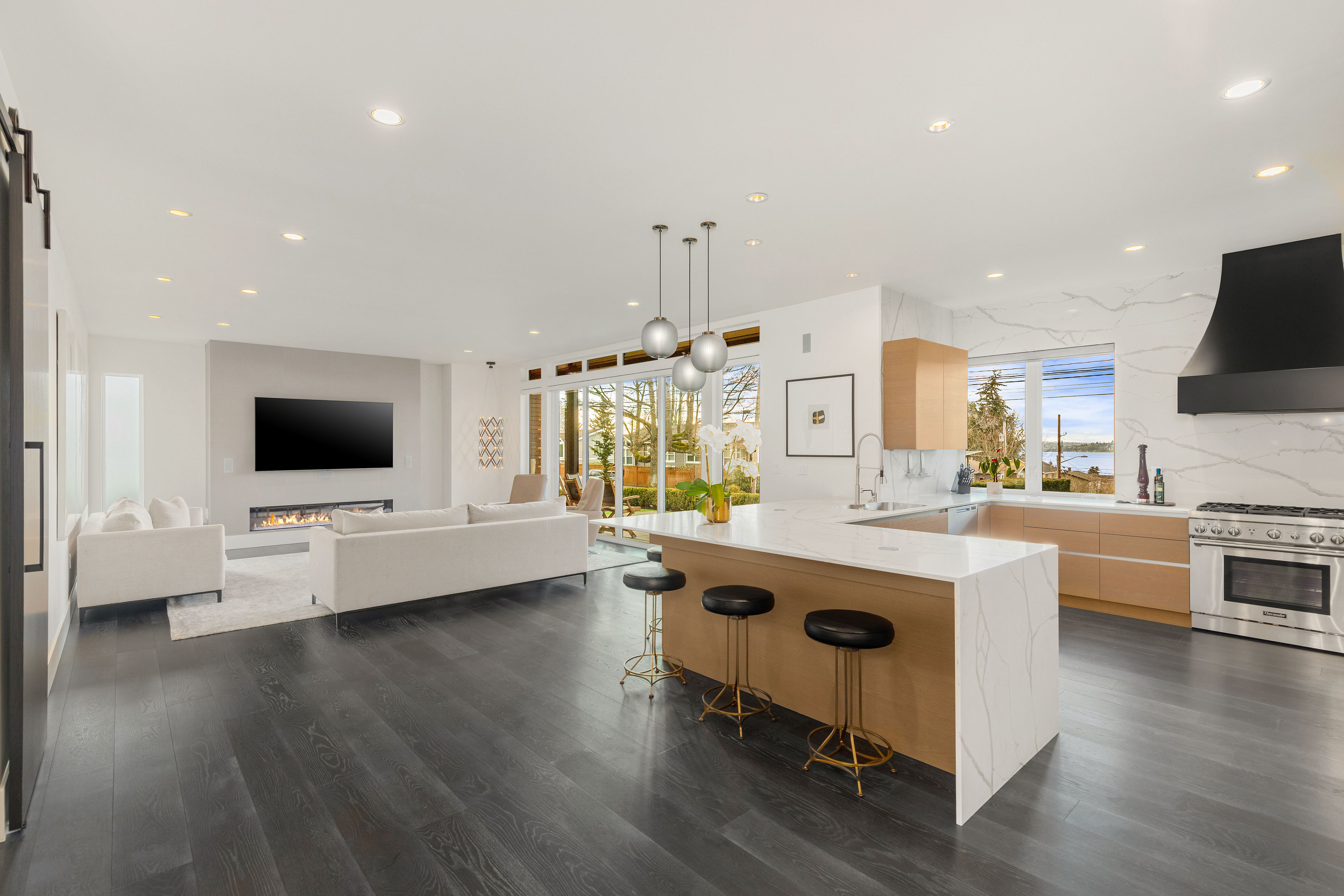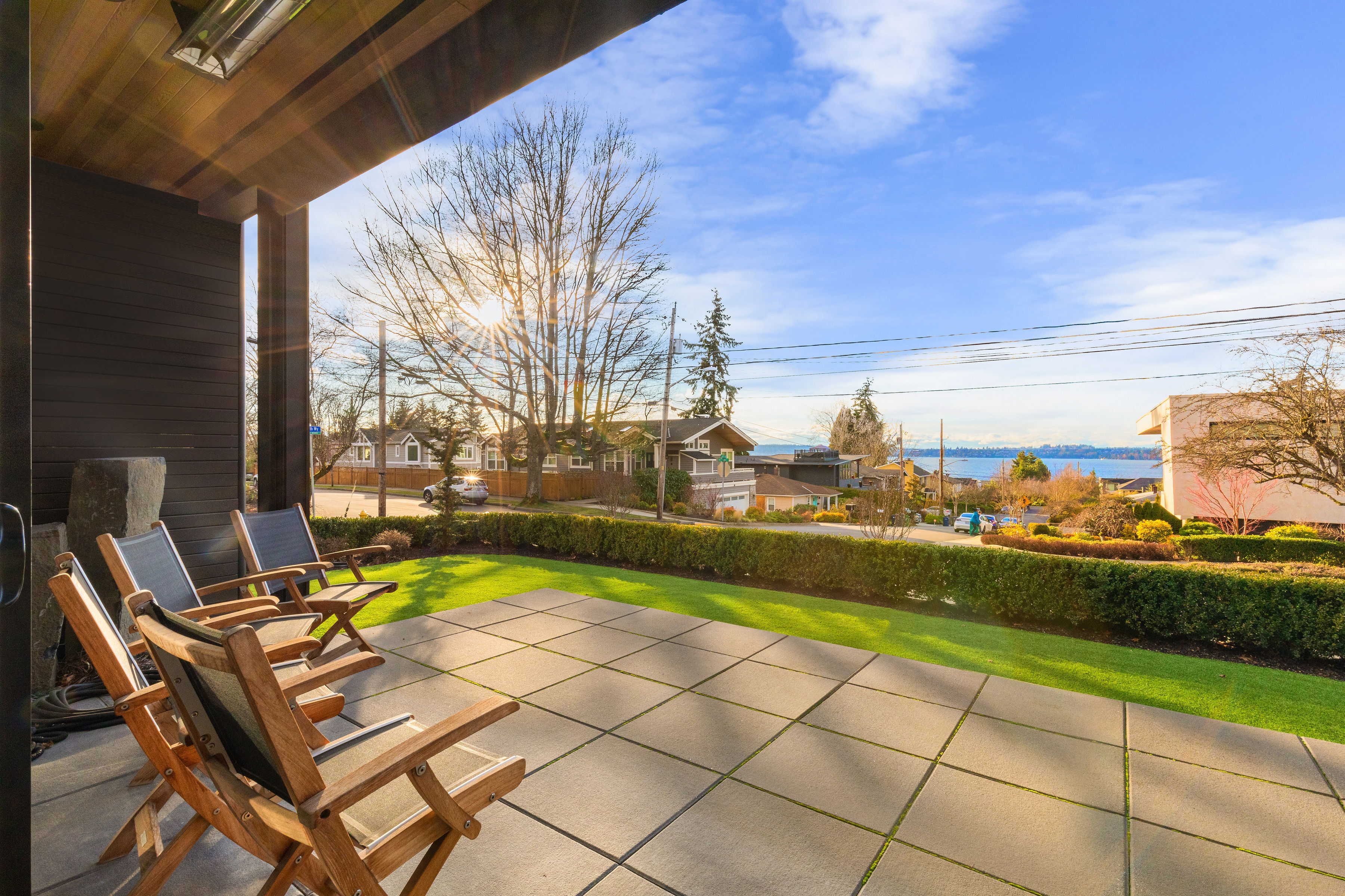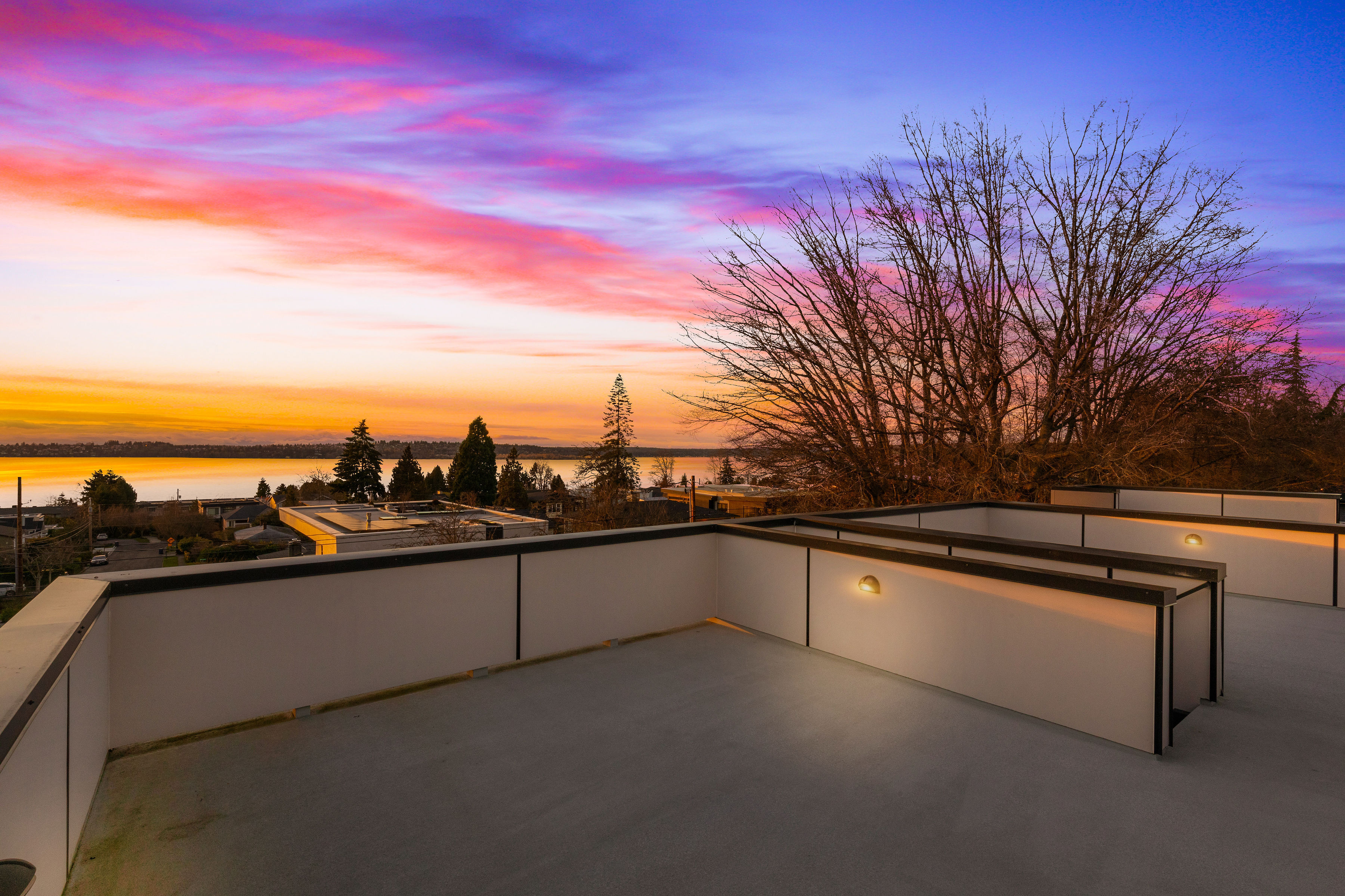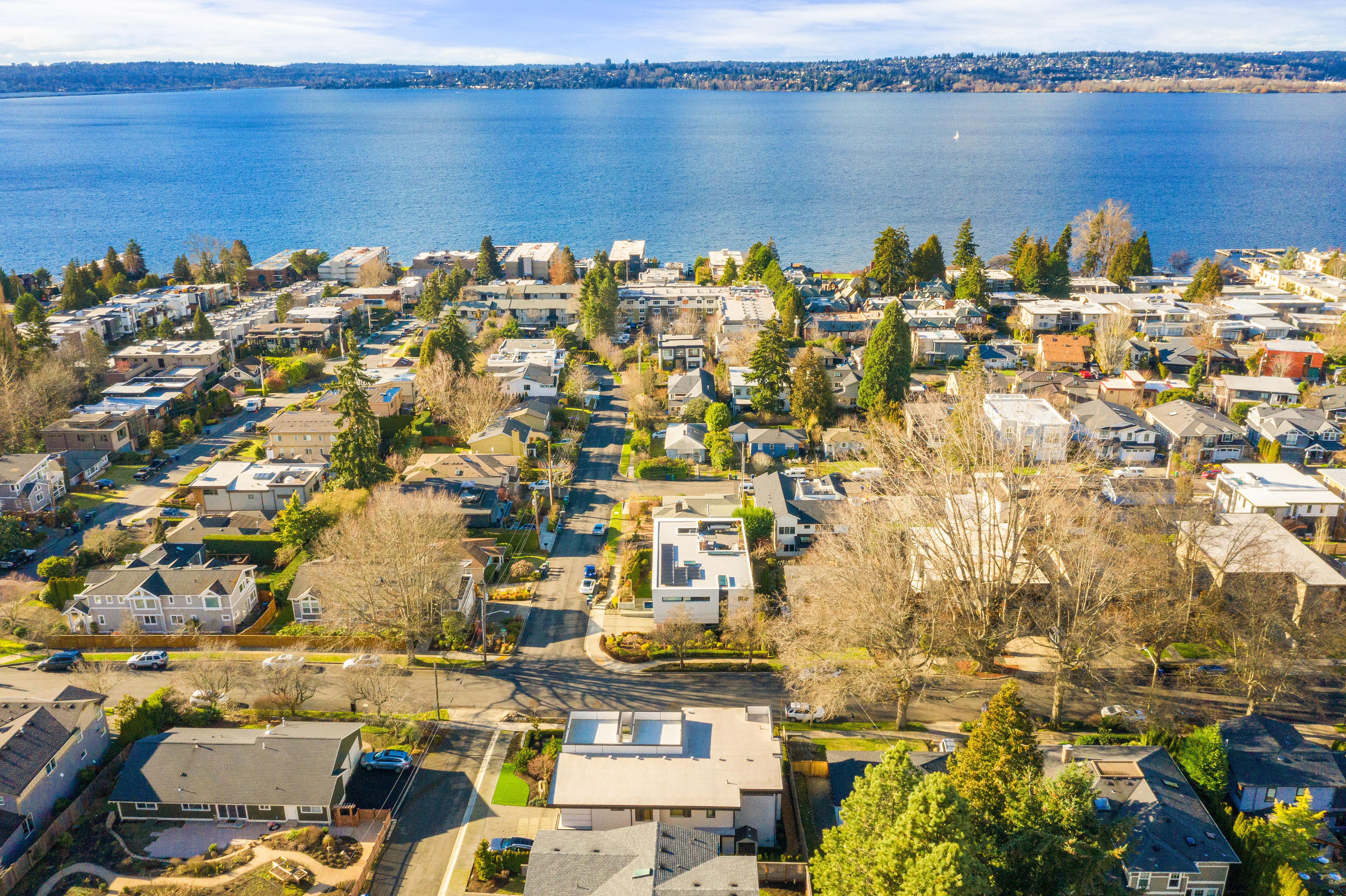 Timeless elegance meets bold design in this contemporary retreat, commanding attention with striking aesthetics and sweeping views. Set in desirable Houghton, just steps from Met Market & Lakeview Elementary. Rich black hardwoods anchor the main level, featuring a sleek chef’s kitchen with moody cabinetry, waterfall quartz island, & Thermador appliance suite with steam oven. Entertain in the expansive great room with linear gas fireplace & high-end audio system that flows to a heated view patio & turf yard. A dining room perfect for hosting, complemented by a guest suite, 3/4 bath, & private office. Upstairs find 3 en-suites including a luxurious primary with heated floors, dual shower, & absolutely giant closet. Access to a large view deck from primary & bonus room. Above it all, the rooftop deck offers stunning views of Lake Washington & Seattle skyline. Oversized 2 car garage wired for EV charging, elevator, hydronic heated floors, backup generator & fully motorized shades elevate everyday living in this exceptional home.