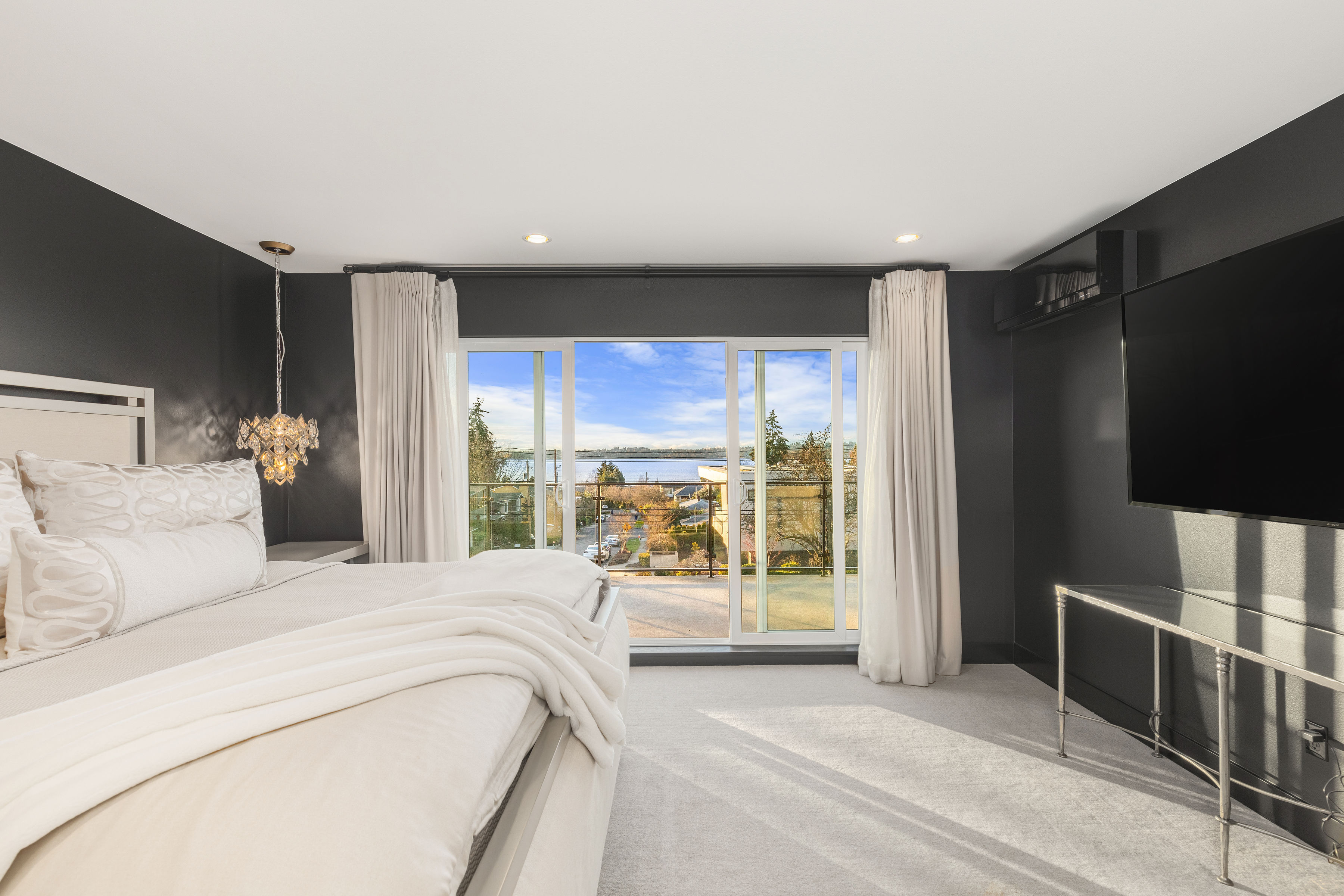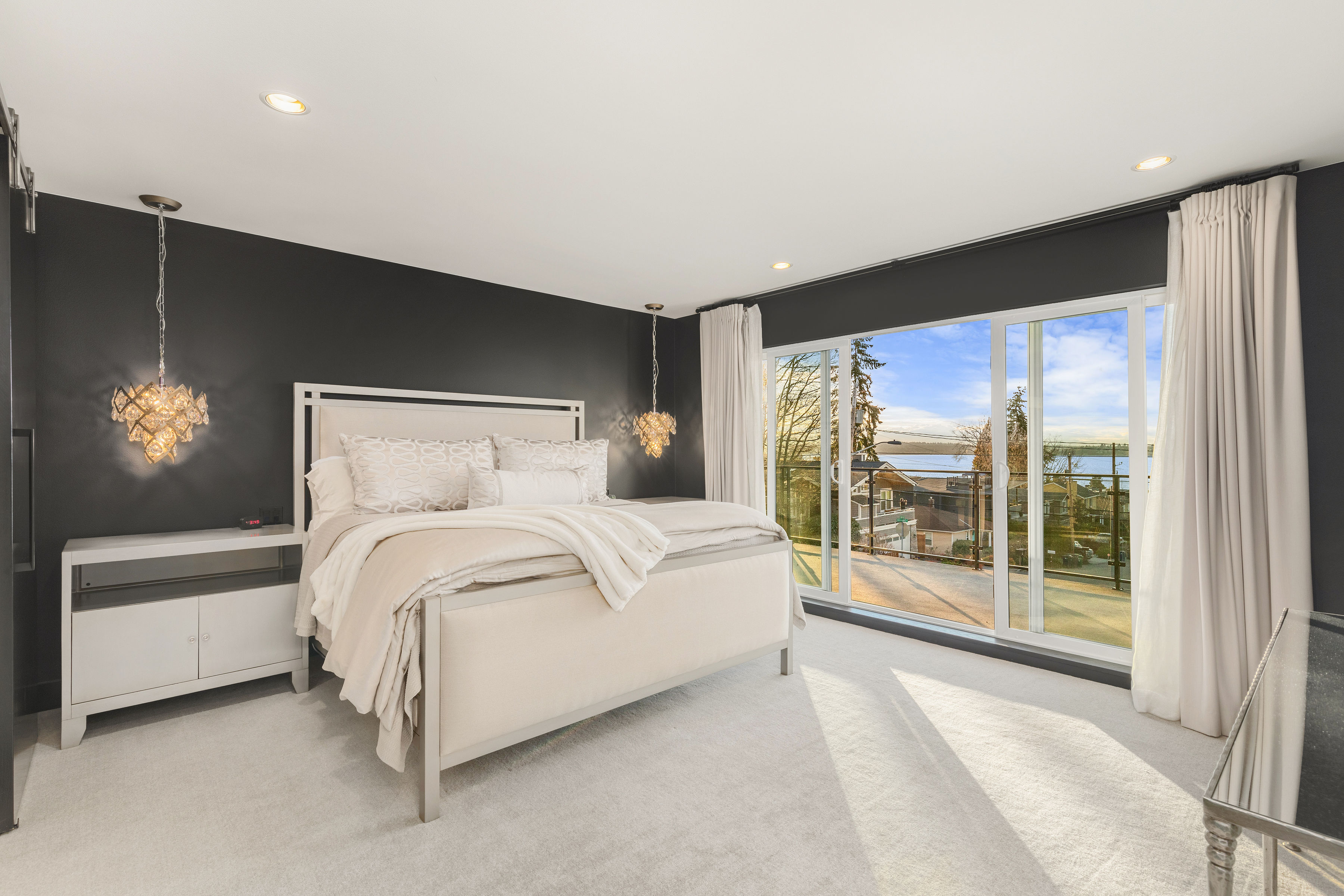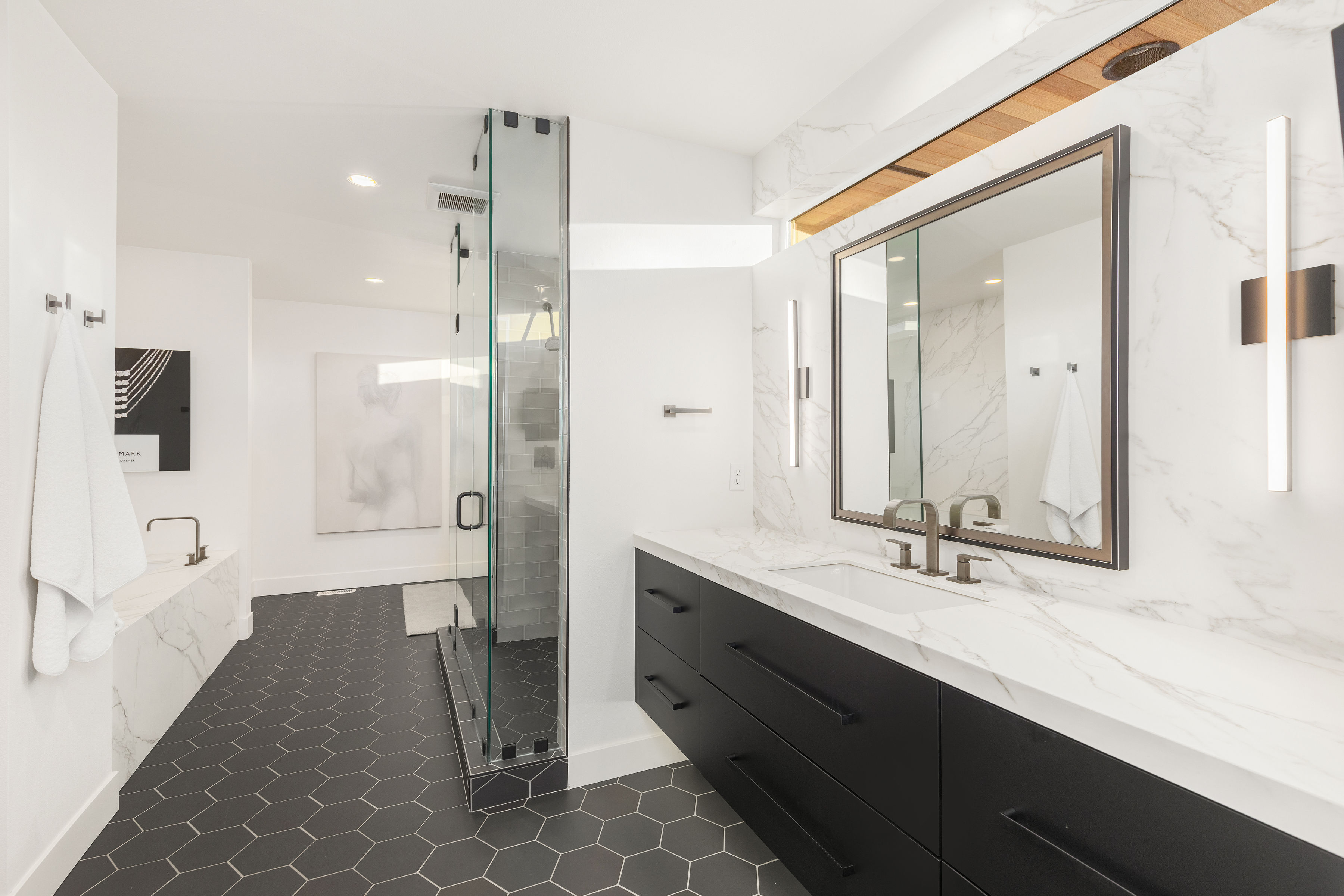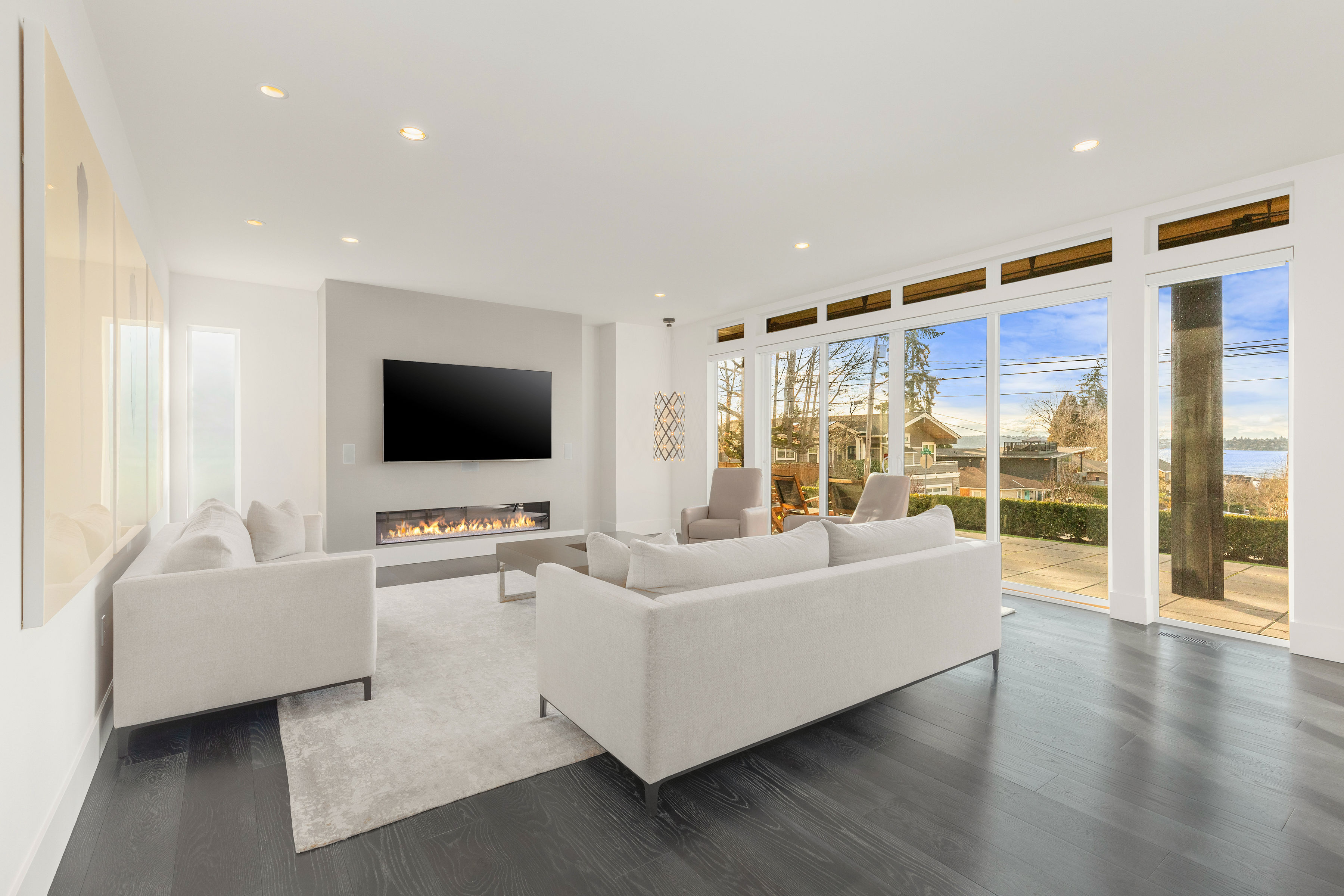 Timeless elegance meets bold design in this contemporary retreat, commanding attention with striking aesthetics and sweeping views. Set in desirable Houghton, just steps from Met Market & Lakeview Elementary. Rich black hardwoods anchor the main level, featuring a sleek chef’s kitchen with moody cabinetry, waterfall quartz island, & Thermador appliance suite with steam oven. Entertain in the expansive great room with linear gas fireplace & high-end audio system that flows to a heated view patio & turf yard. A dining room perfect for hosting, complemented by a guest suite, 3/4 bath, & private office. Upstairs find 3 en-suites including a luxurious primary with heated floors, dual shower, & absolutely giant closet. Access to a large view deck from primary & bonus room. Above it all, the rooftop deck offers stunning views of Lake Washington & Seattle skyline. Oversized 2 car garage wired for EV charging, elevator, hydronic heated floors, backup generator & fully motorized shades elevate everyday living in this exceptional home.