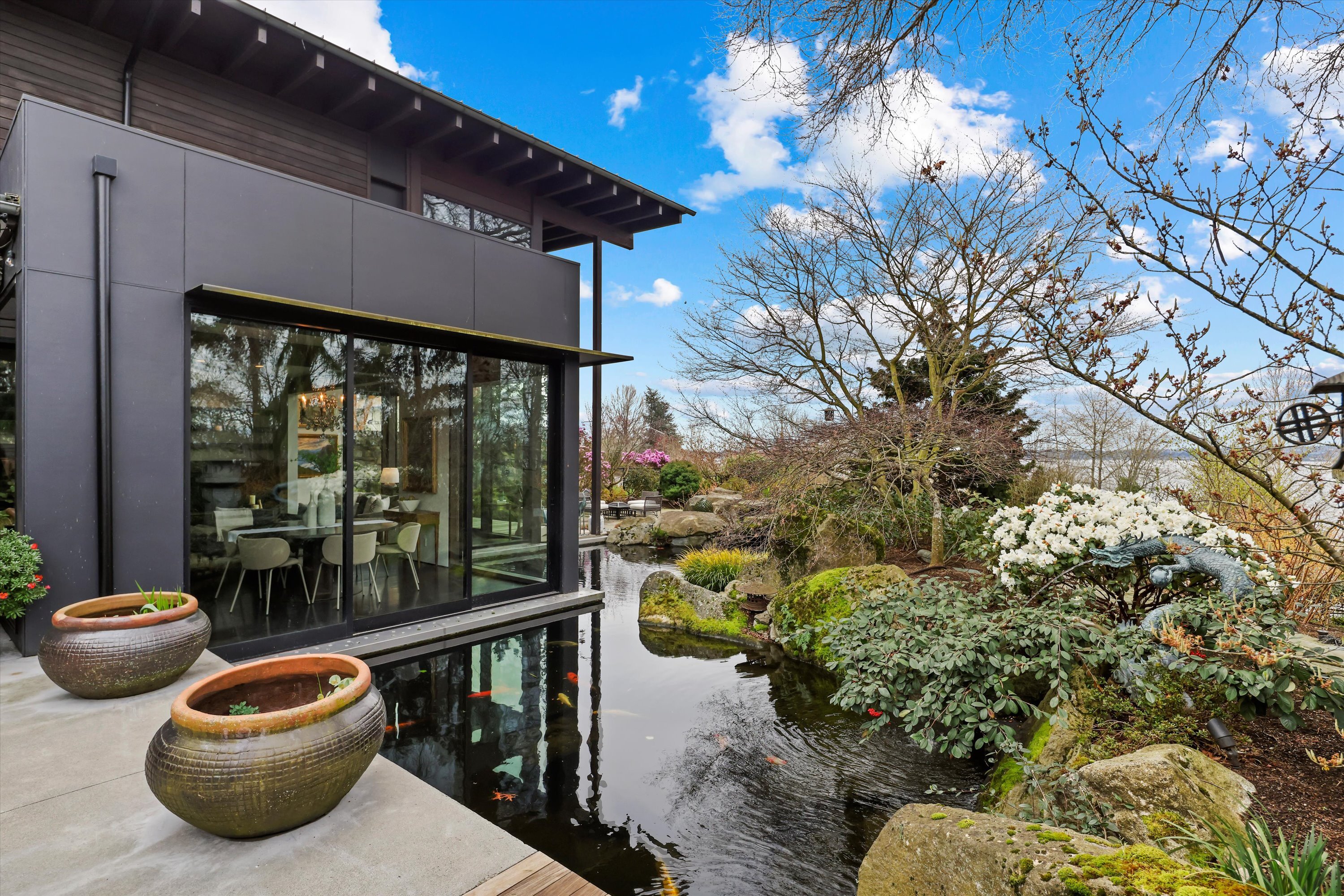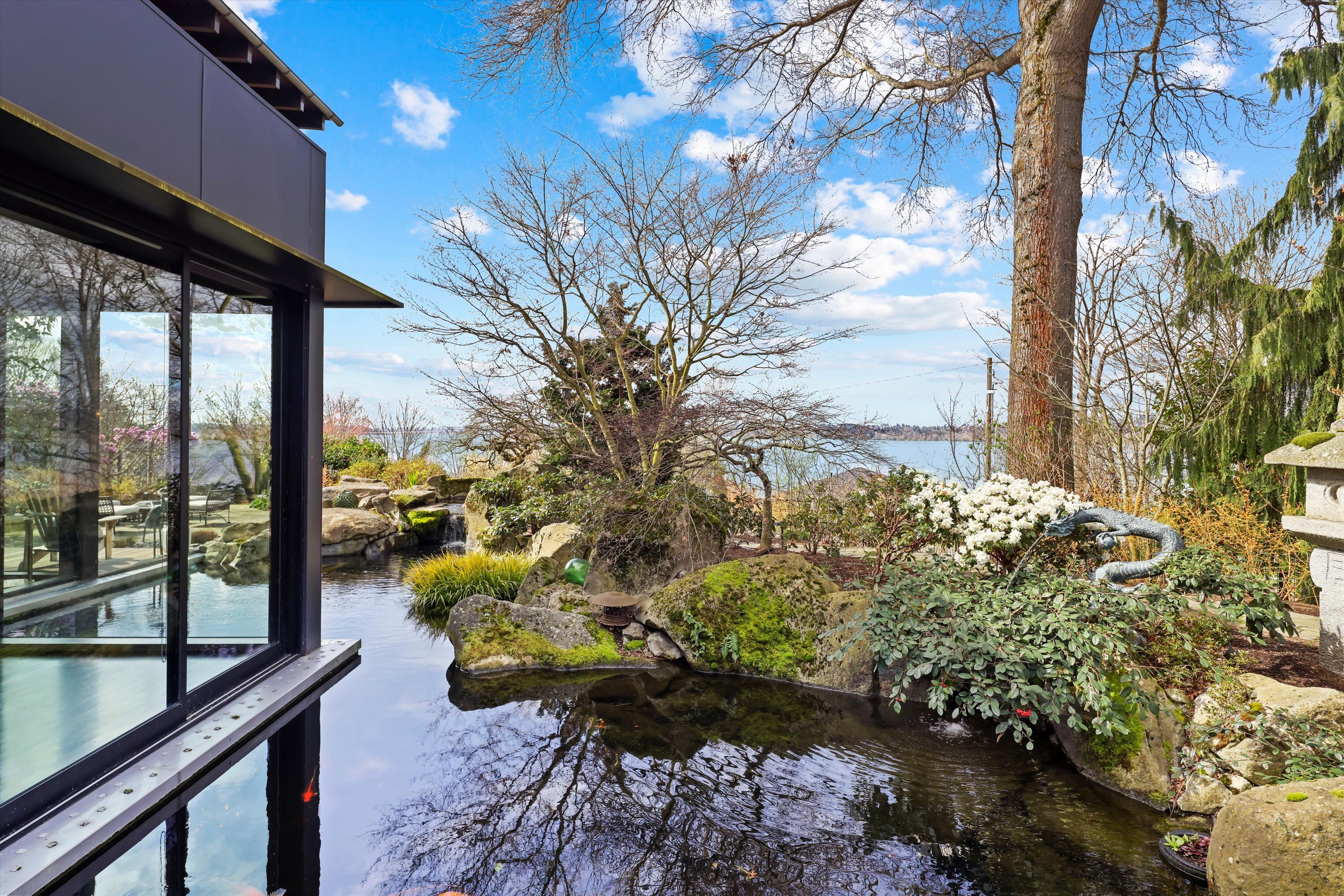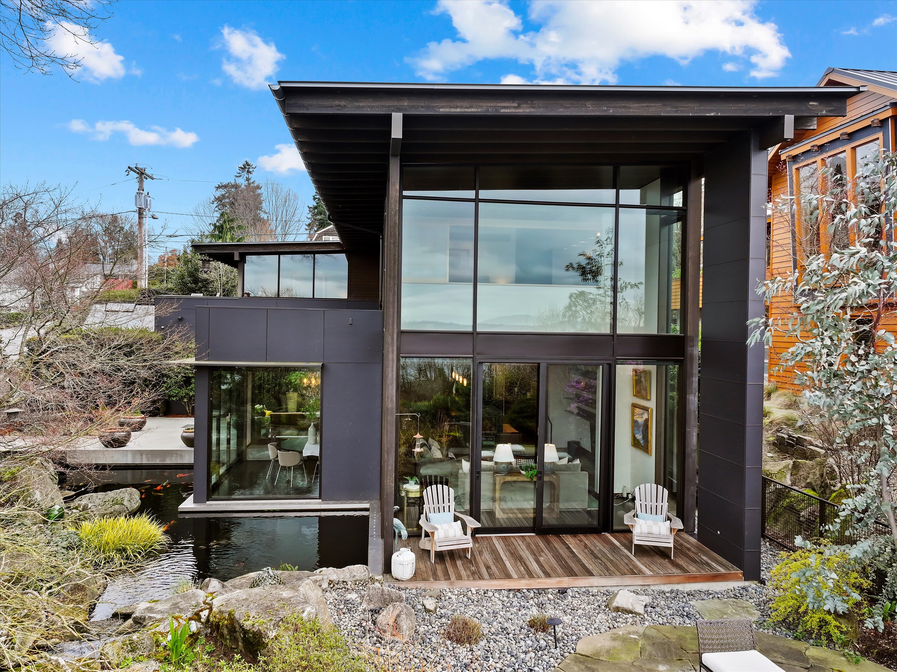 Exquisite, elegantly crafted custom-designed 2,960 SF residence offers 3BRs & 2BAs on a beautifully curated 7,805 SF lot. Artistic masterpiece designed by acclaimed architect George Suyama, it seamlessly blends structure with nature. A stunning koi pond wraps around much of the main living space & both deck & patio areas, creating a tranquil, immersive environment, while soaring ceilings & dramatic floor-to-ceiling windows flood the home with natural light to bring the outdoor sanctuary indoors. At the heart of the home is a true epicurean kitchen featuring a Lacanche Sully 1800 range, alongside a Tulikivi Finnish soapstone fireplace, raised kitchen garden & greenhouse—all thoughtfully designed with exceptional materials & craftsmanship, exemplifying NW Modern architecture at its finest. The serene, fully fenced grounds offer privacy & beauty w/sculptural landscape boulders, a bridged entry, specimen plantings, rock gardens & the extensive koi pond complete with fountains & a waterfall. Modern comfort meets timeless design with in-floor radiant heating, high-end sound system, custom metal fencing, glass-roofed patio, & a gas firepit, perfect for year-round enjoyment. Across from Waverly Park, with sweeping westerly views of Lake Washington, the Seattle skyline, & breathtaking sunsets, all within the coveted West of Market neighborhood, one of the Eastside’s most walkable & desirable communities - a once-in-a-lifetime opportunity to own a home that truly defines luxury living.