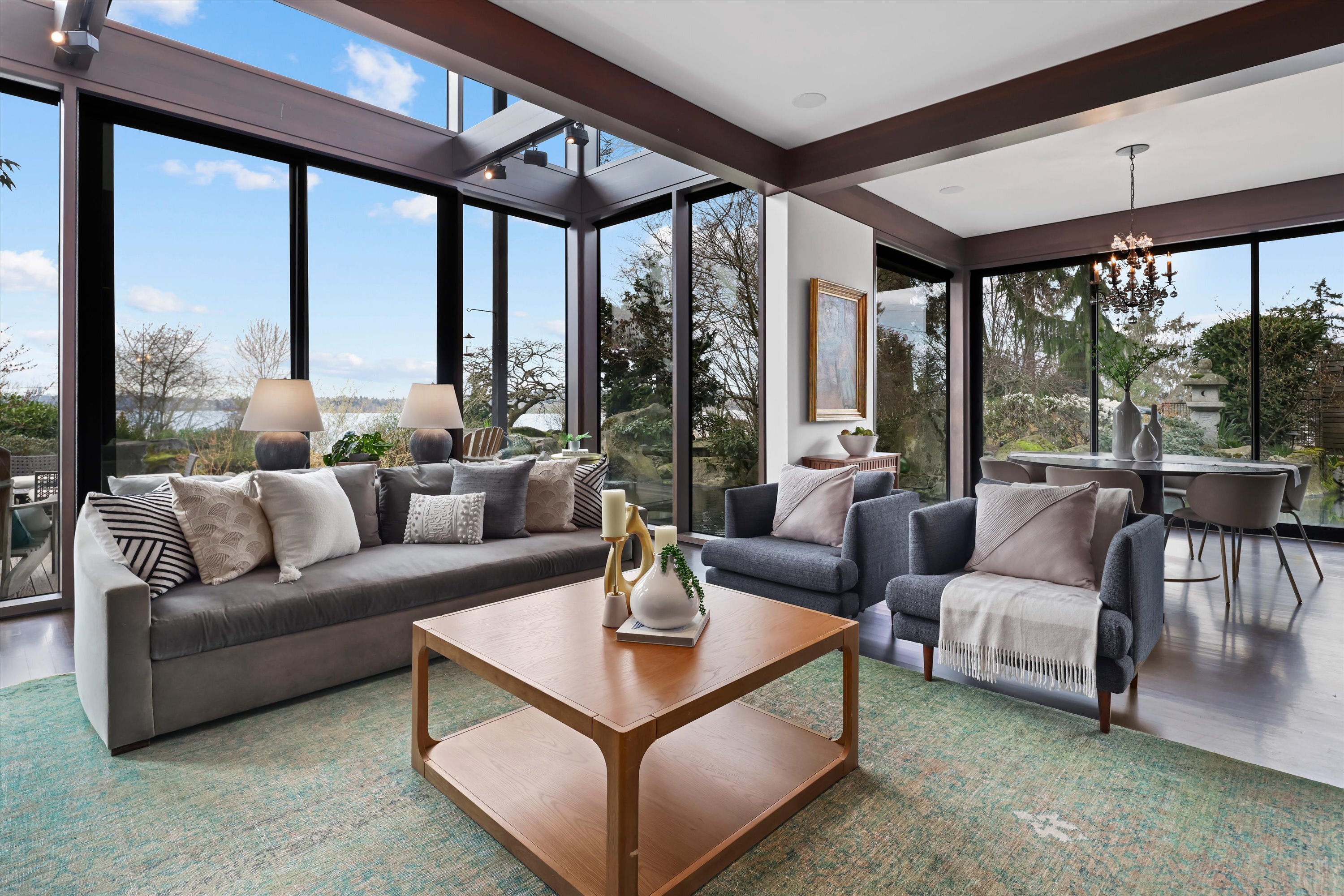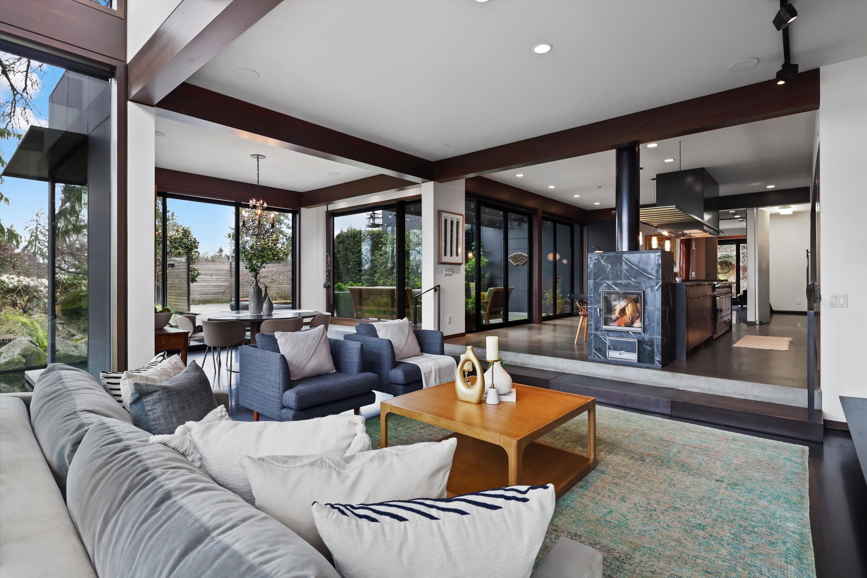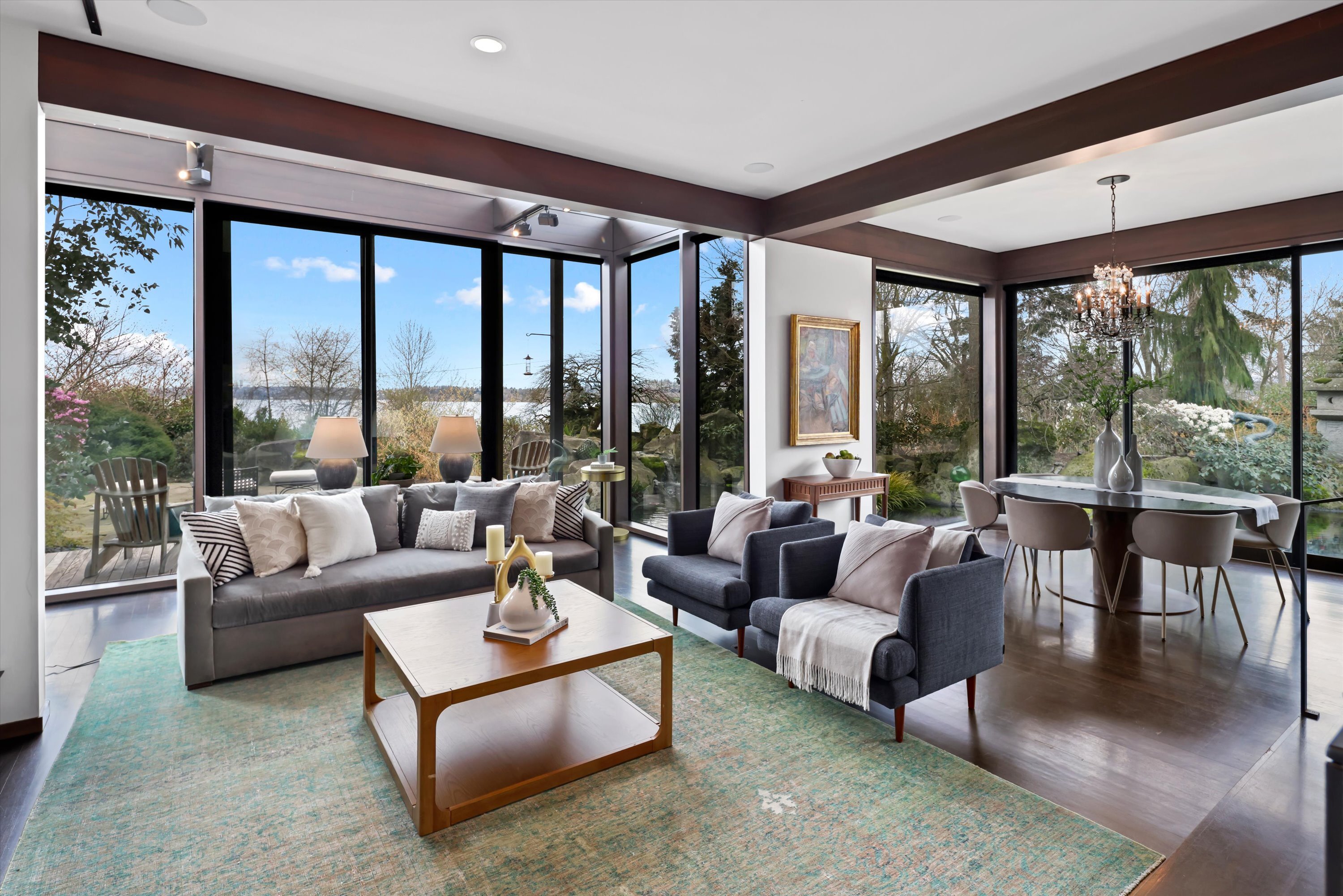 Exquisite, elegantly crafted custom-designed 2,960 SF residence offers 3BRs & 2BAs on a beautifully curated 7,805 SF lot. Artistic masterpiece designed by acclaimed architect George Suyama, it seamlessly blends structure with nature. A stunning koi pond wraps around much of the main living space & both deck & patio areas, creating a tranquil, immersive environment, while soaring ceilings & dramatic floor-to-ceiling windows flood the home with natural light to bring the outdoor sanctuary indoors. At the heart of the home is a true epicurean kitchen featuring a Lacanche Sully 1800 range, alongside a Tulikivi Finnish soapstone fireplace, raised kitchen garden & greenhouse—all thoughtfully designed with exceptional materials & craftsmanship, exemplifying NW Modern architecture at its finest. The serene, fully fenced grounds offer privacy & beauty w/sculptural landscape boulders, a bridged entry, specimen plantings, rock gardens & the extensive koi pond complete with fountains & a waterfall. Modern comfort meets timeless design with in-floor radiant heating, high-end sound system, custom metal fencing, glass-roofed patio, & a gas firepit, perfect for year-round enjoyment. Across from Waverly Park, with sweeping westerly views of Lake Washington, the Seattle skyline, & breathtaking sunsets, all within the coveted West of Market neighborhood, one of the Eastside’s most walkable & desirable communities - a once-in-a-lifetime opportunity to own a home that truly defines luxury living.