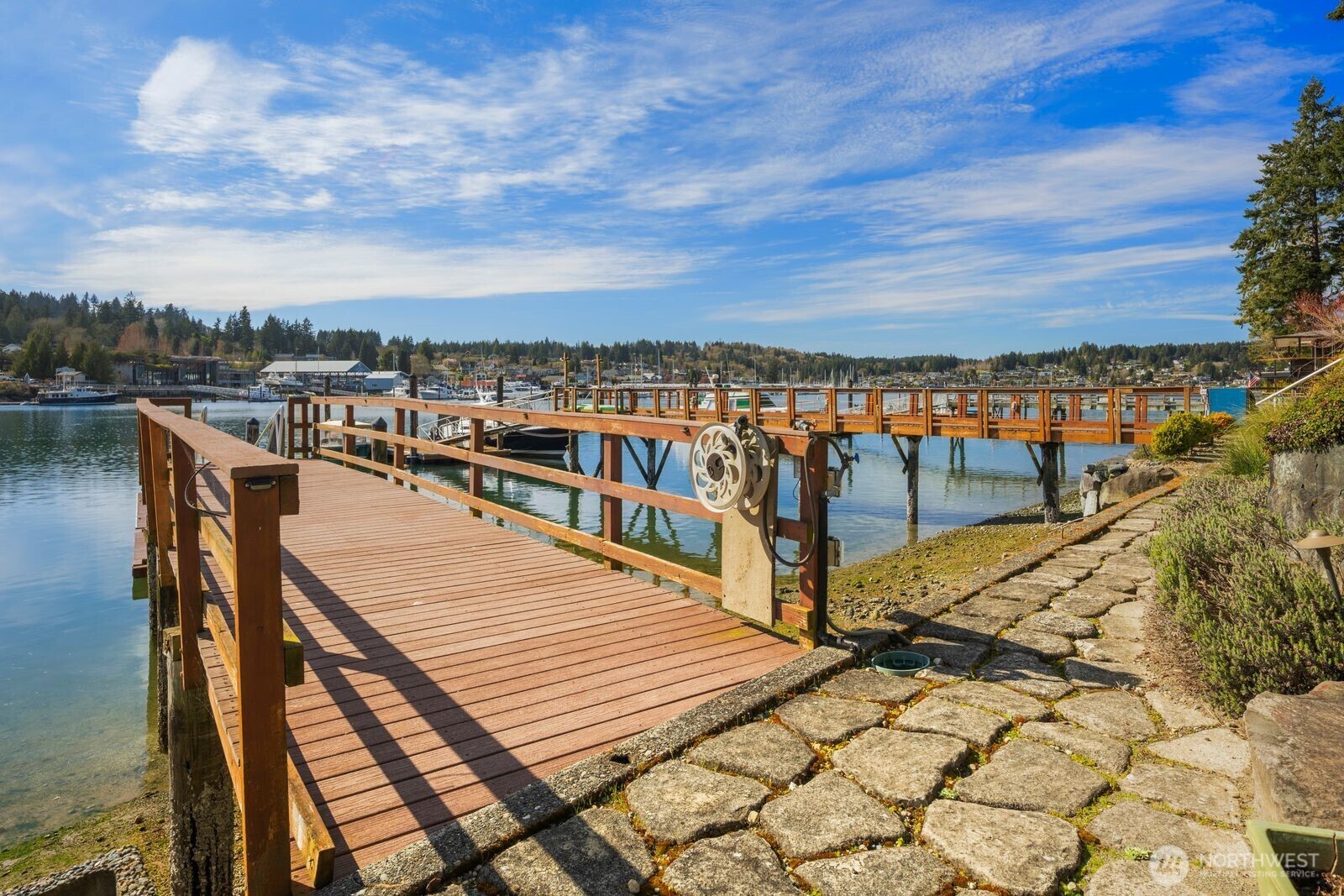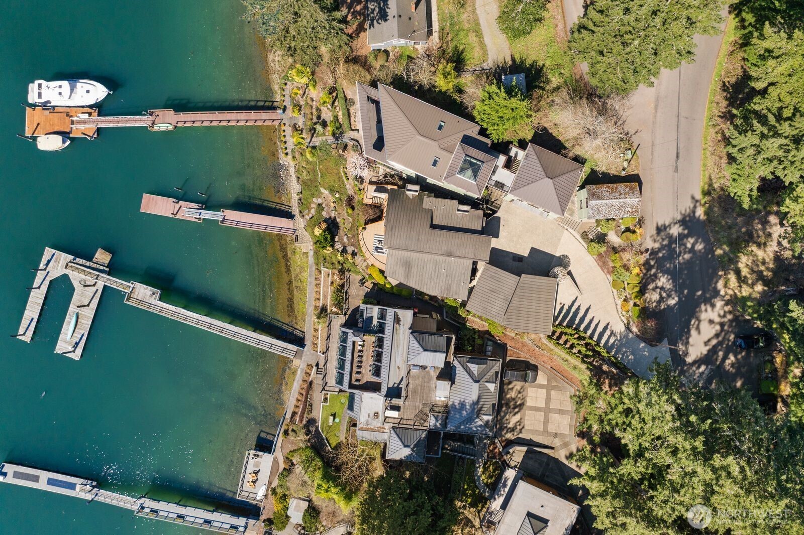 This stunning NW Contemporary waterfront retreat, perfectly positioned along the coveted shores of Gig Harbor Bay. Blending timeless design with effortless luxury, this exceptional 4-bedroom residence offers 50ft of low-bank waterfront & an unparalleled connection to the vibrant maritime lifestyle just beyond your patio. Boating enthusiasts will appreciate not one, but two docks—a 44ft shared dock & a 34ft private dock—ideal for accommodating your yacht, sailboat, or wend watercraft. Here, the harbor truly becomes an extension of your home, where morning coffee pairs with gentle waves & evenings are framed by glowing sunsets over the water. Inside, walls of windows capture sweeping 180-degree harbor views, filling every space w/ natural light & a sense of serenity. The main-level primary suite is a private sanctuary, featuring breathtaking views, walk-in closet, & a beautifully remodeled bath complete with radiant heated floors, an elegant shower, & a freestanding soaking tub. Designed for both comfort and entertaining, the home continues to impress on the lower level with a generous family room anchored by a cozy gas fireplace, as well as a temperature-controlled wine room—perfect for collectors and don't miss the over sized garage. A stylishly updated ¾ bath adds convenience and flexibility for guests. This is more than a home—it’s a lifestyle. Experience the charm & beauty of waterfront living in the PNW. Move-in ready ~ just bring your suitcases. Selling fully furnished!
