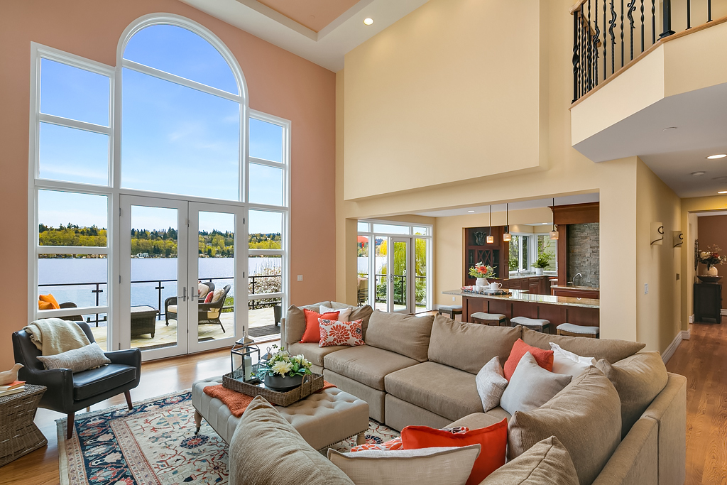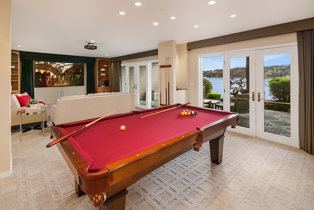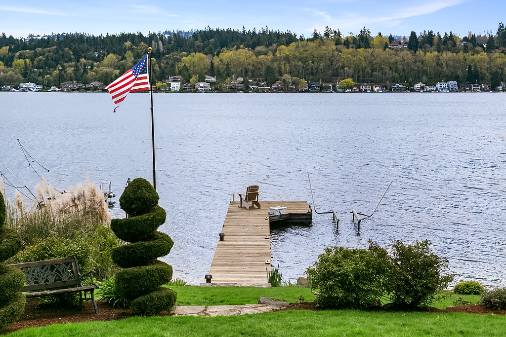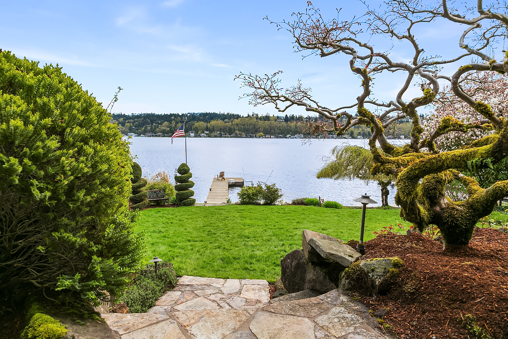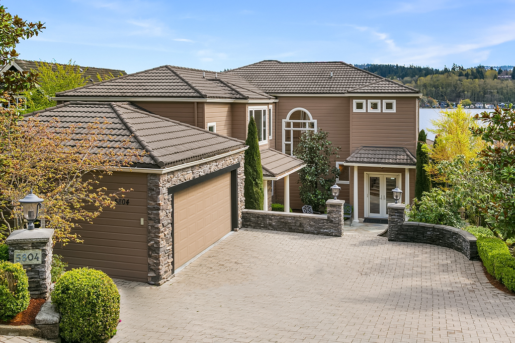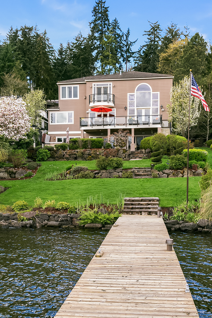 Lakeside Living at its best! Walls of windows frame stunning views of Lake WA and Mt. Rainier on 60 of waterfront. Ideal floorplan and smartly designed spaces: open great room w/ soaring ceilings flows into gourmet kitchen w/ eating bar and large entertaining deck. Main floor den and guest suite. Upstairs, 3 more en suite bedrooms including fabulous view master retreat. Host the crowd on the lower level for movies, hot tub or game night after enjoying a day on the lake. Radiant. Alluring. Exceptional.