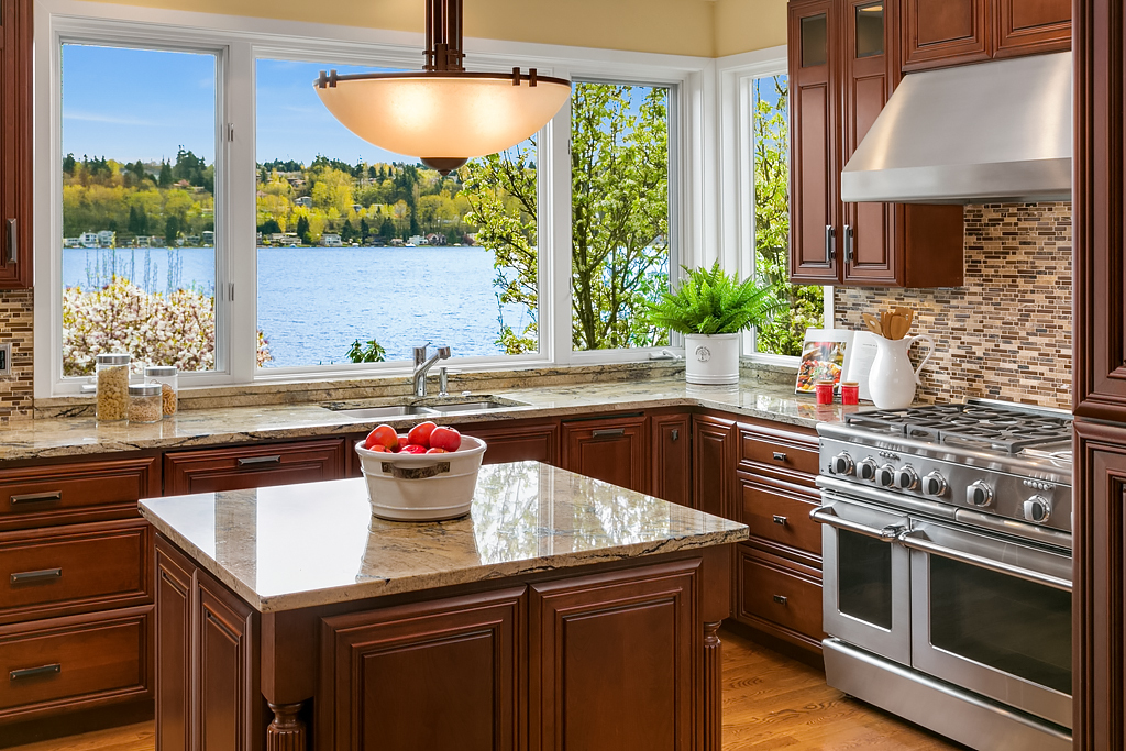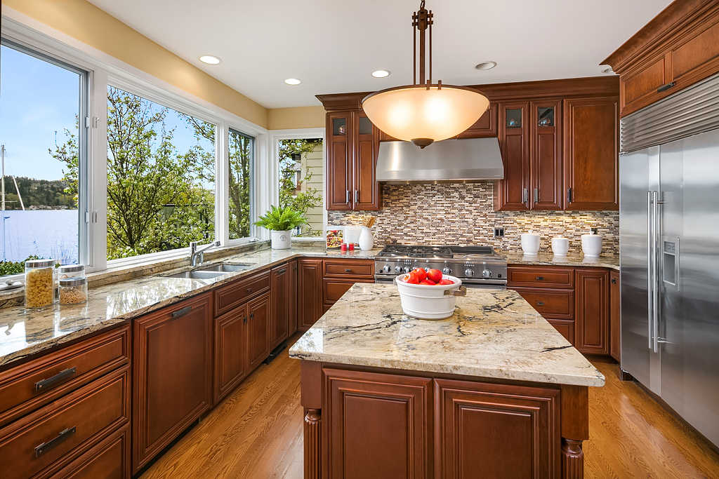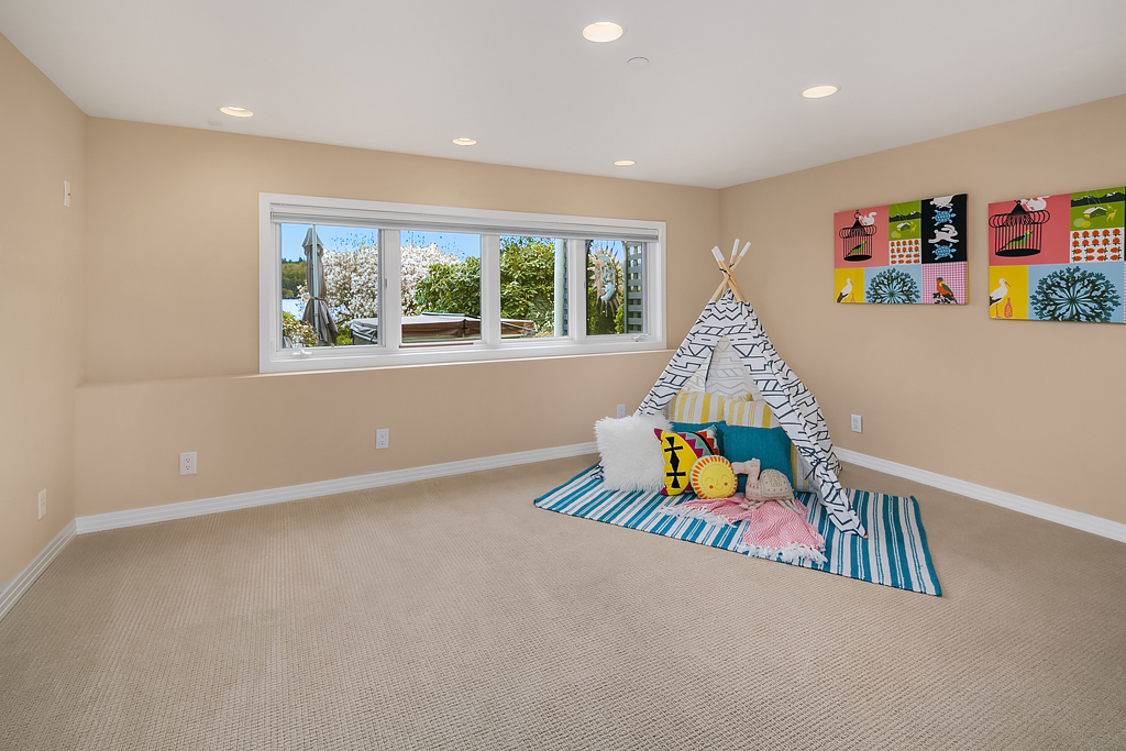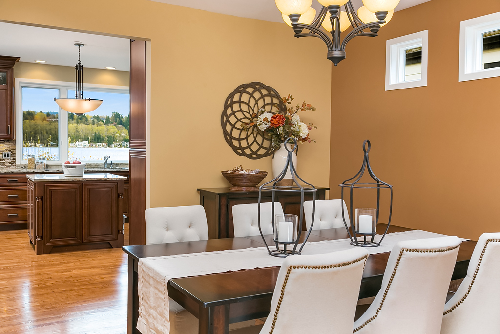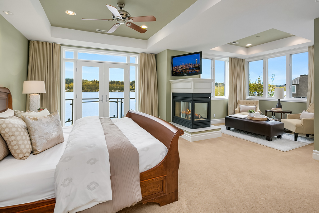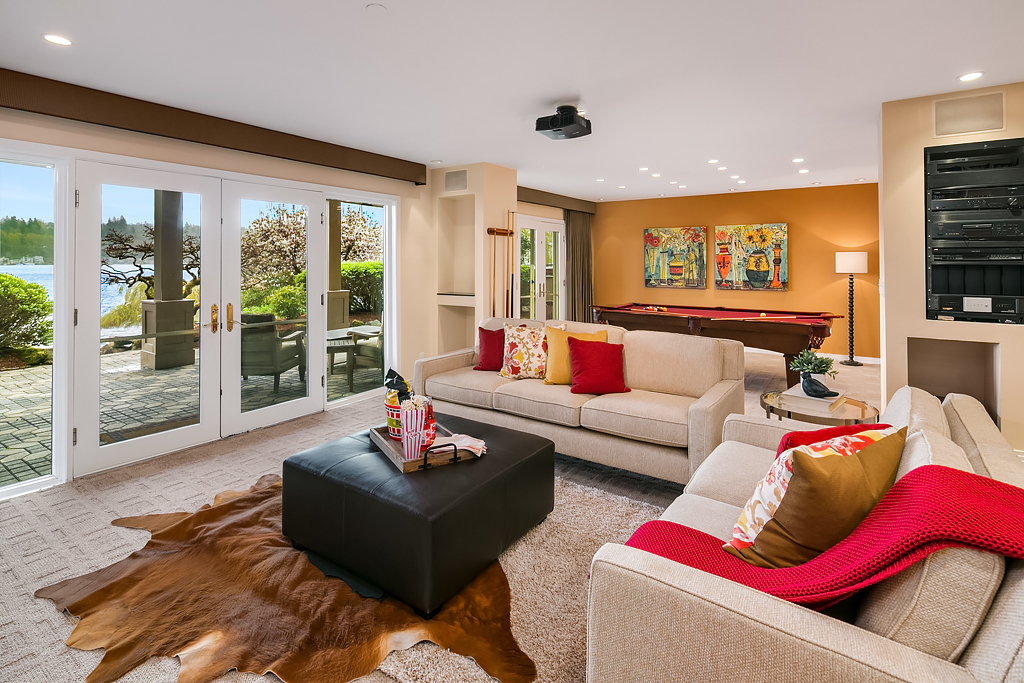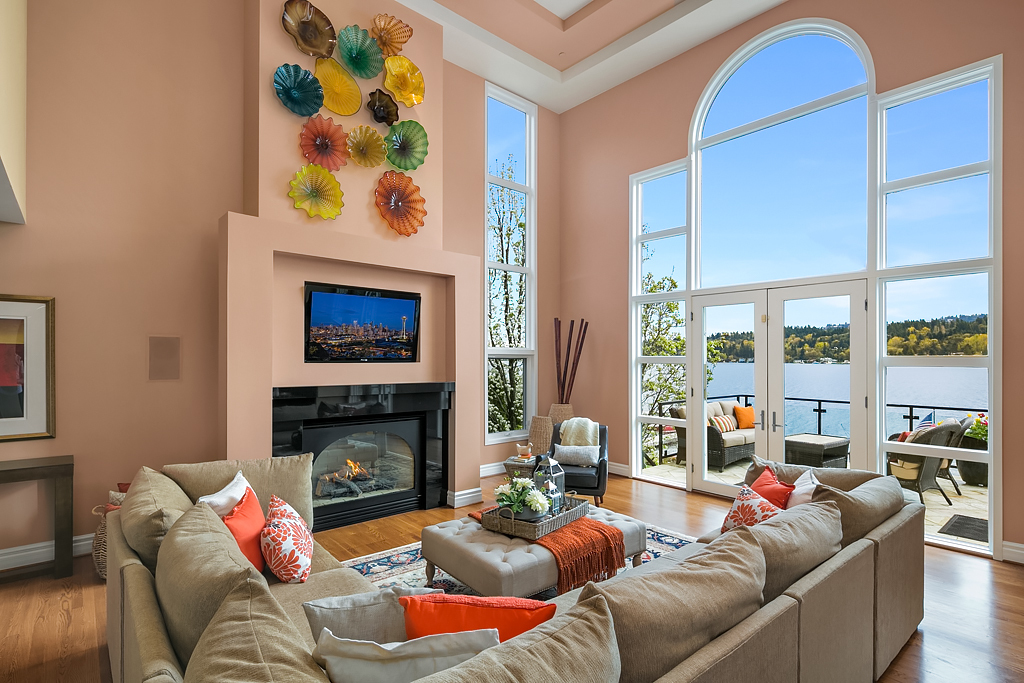 Lakeside Living at its best! Walls of windows frame stunning views of Lake WA and Mt. Rainier on 60 of waterfront. Ideal floorplan and smartly designed spaces: open great room w/ soaring ceilings flows into gourmet kitchen w/ eating bar and large entertaining deck. Main floor den and guest suite. Upstairs, 3 more en suite bedrooms including fabulous view master retreat. Host the crowd on the lower level for movies, hot tub or game night after enjoying a day on the lake. Radiant. Alluring. Exceptional.