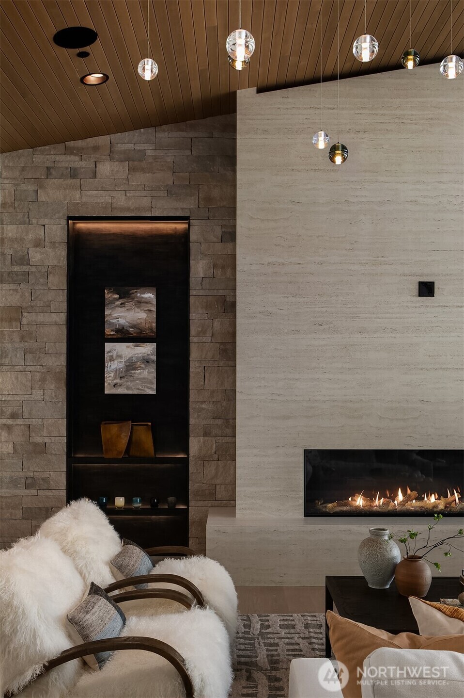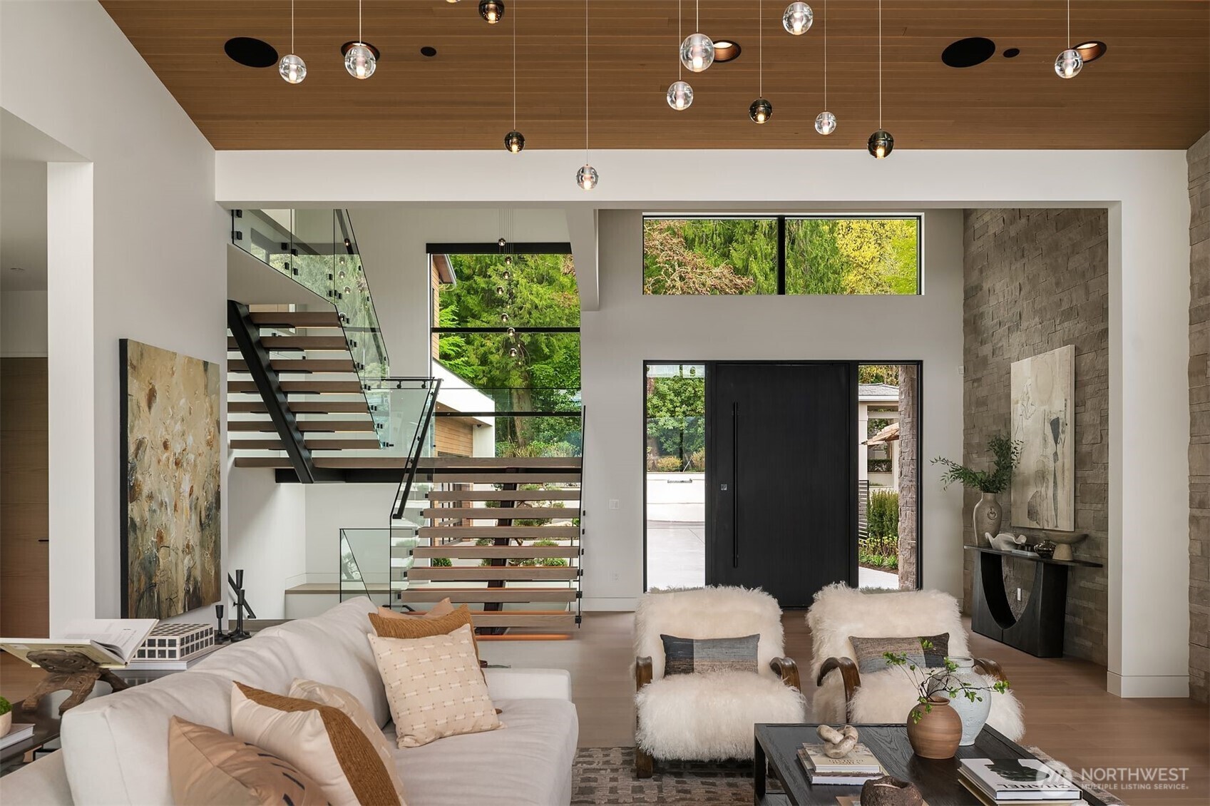 A rare Lake Washington waterfront offering on Mercer Island, this newly constructed home is built by MacPherson Construction & Design and resides on over 121 feet of sun-filled, no-bank shoreline along Lake Washington. Defined by exceptional natural light and sweeping, uninterrupted lake views, the home offers a seamless connection between indoor living and the water, delivering a rare experience of waterfront living. Thoughtfully designed for both entertaining and everyday living, it features vaulted wood ceilings, textured stone accents, a chef’s kitchen with butler’s pantry, a large wine room, and a stand-behind bar.A two-tier theater room, spacious bonus room, private office, four ensuite bedrooms, and a spa-inspired primary suite with an expansive walk-in closet elevate everyday comfort and livability. Heated covered outdoor living extends the seasons with a lake-view patio, spa, fire pit, seating area, and putting green, completing this exceptional waterfront retreat.