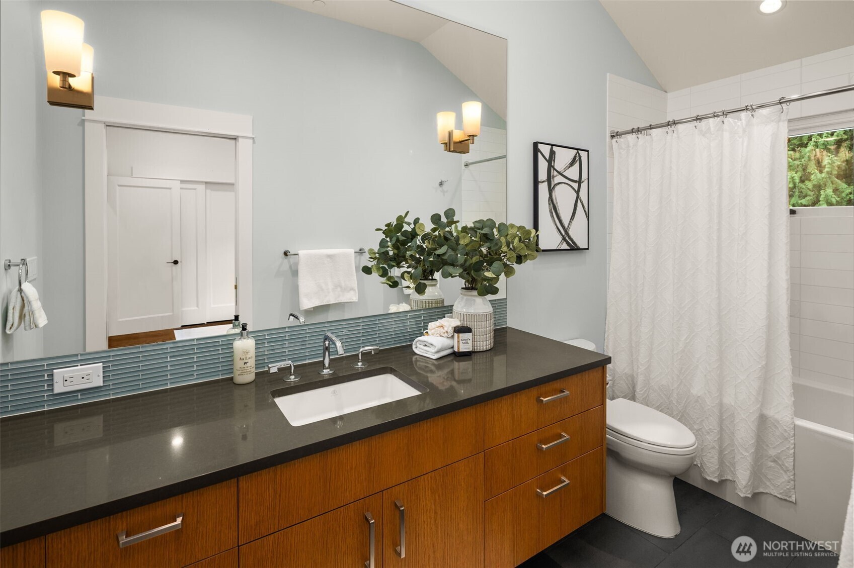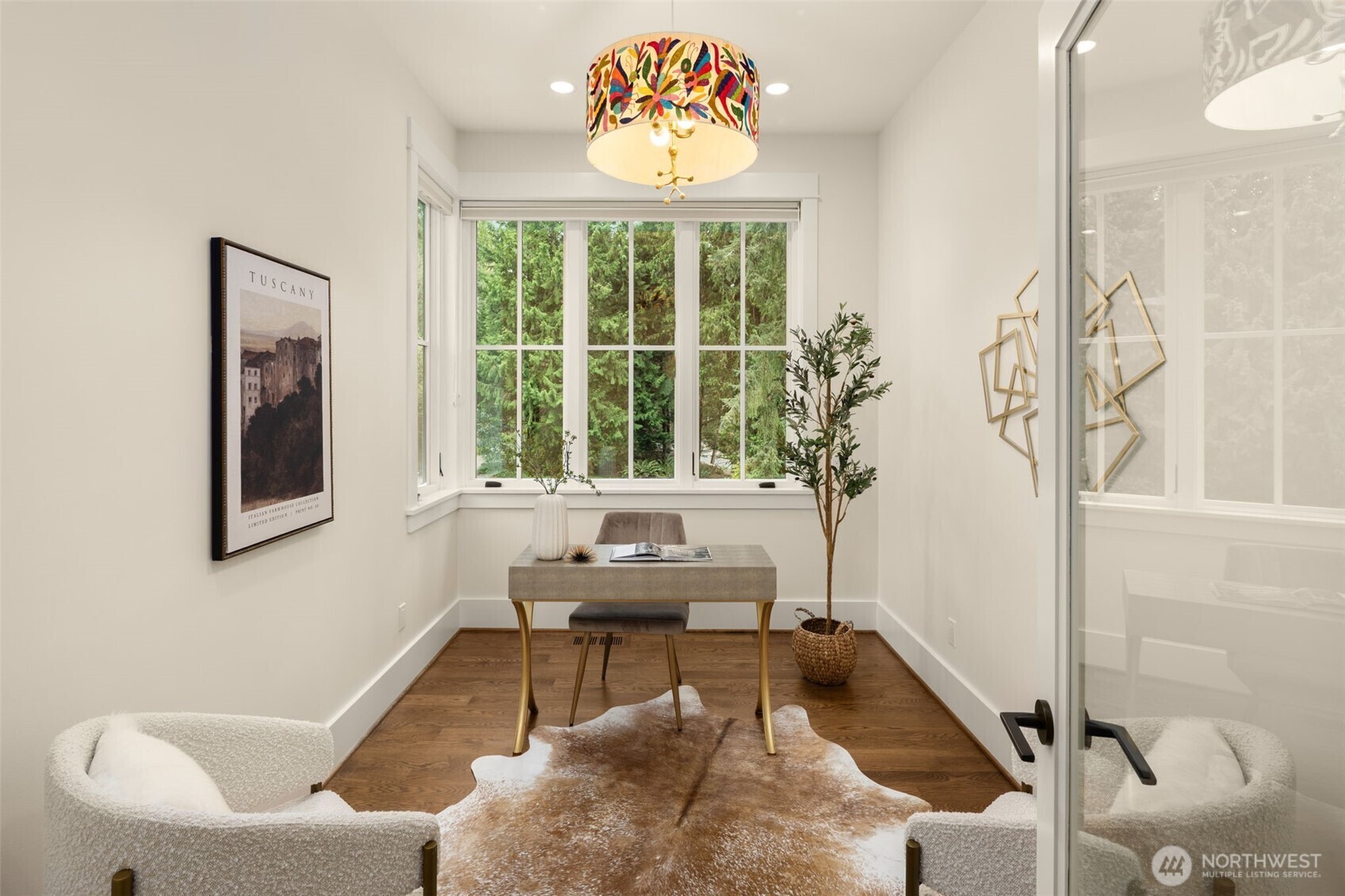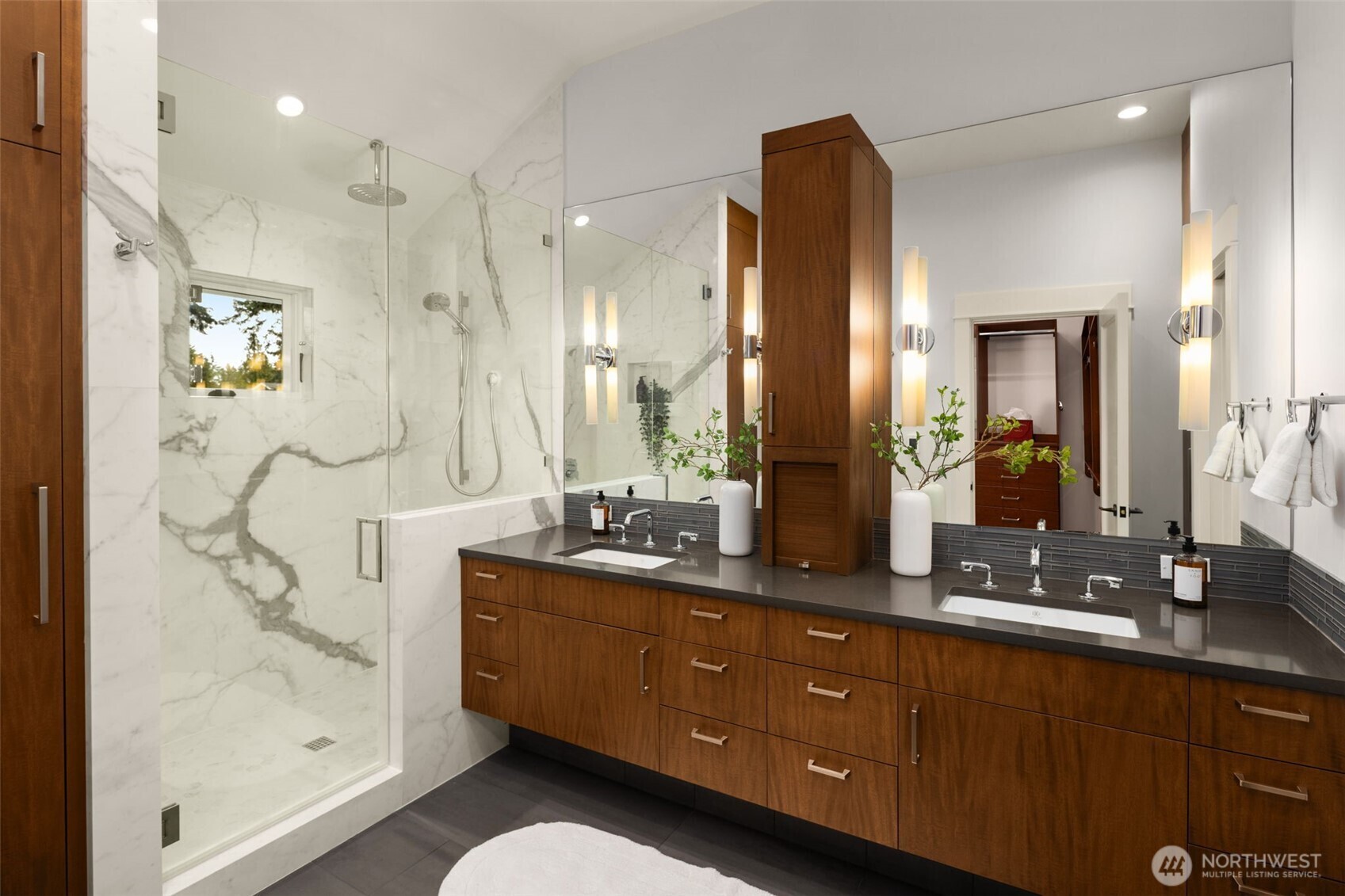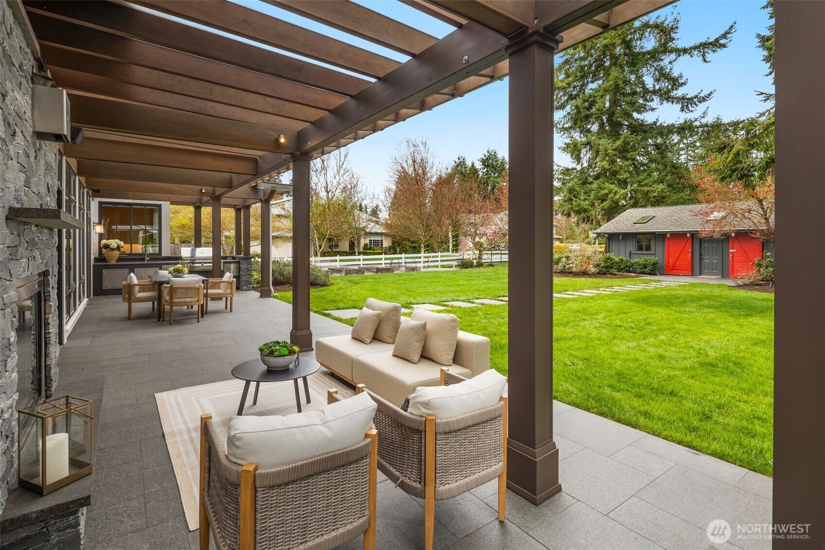 Located in a peaceful enclave, this bespoke estate is a masterclass in architectural vision, blending nature with sophisticated design. The residence defines fluid grace, featuring a culinary kitchen with luxury appointments that flow into light-filled living spaces via floor-to-ceiling glazing. For the professional, the executive office offers a hearth and private flagstone terrace, while a main-level suite accommodates guests & multi-generational living. The upper level is a dedicated haven. The Primary Sanctuary serves as a rejuvenating retreat with a lounge, boutique dressing room, and spa-caliber ensuite. This level also includes two junior suites, a secondary office, a fitness studio, and a vaulted bonus wing, perfect for a cinema or secondary primary retreat. The estate transitions into an unrivaled outdoor lifestyle. Relax on the slate terrace by the fireplace or wander through park-like grounds with crushed granite paths. The converted barn, now the golf and fitness lodge, which boasts a golf simulator, putting green, a professional-grade gym, and basketball court. Perfectly positioned in the renowned Lake Washington School District, this estate is just down the street from Bridle Trails State Park and mere minutes to the technological and cultural hubs of Redmond, Kirkland, and Bellevue. This is more than a dream home; it is a celebration of a charmed lifestyle.